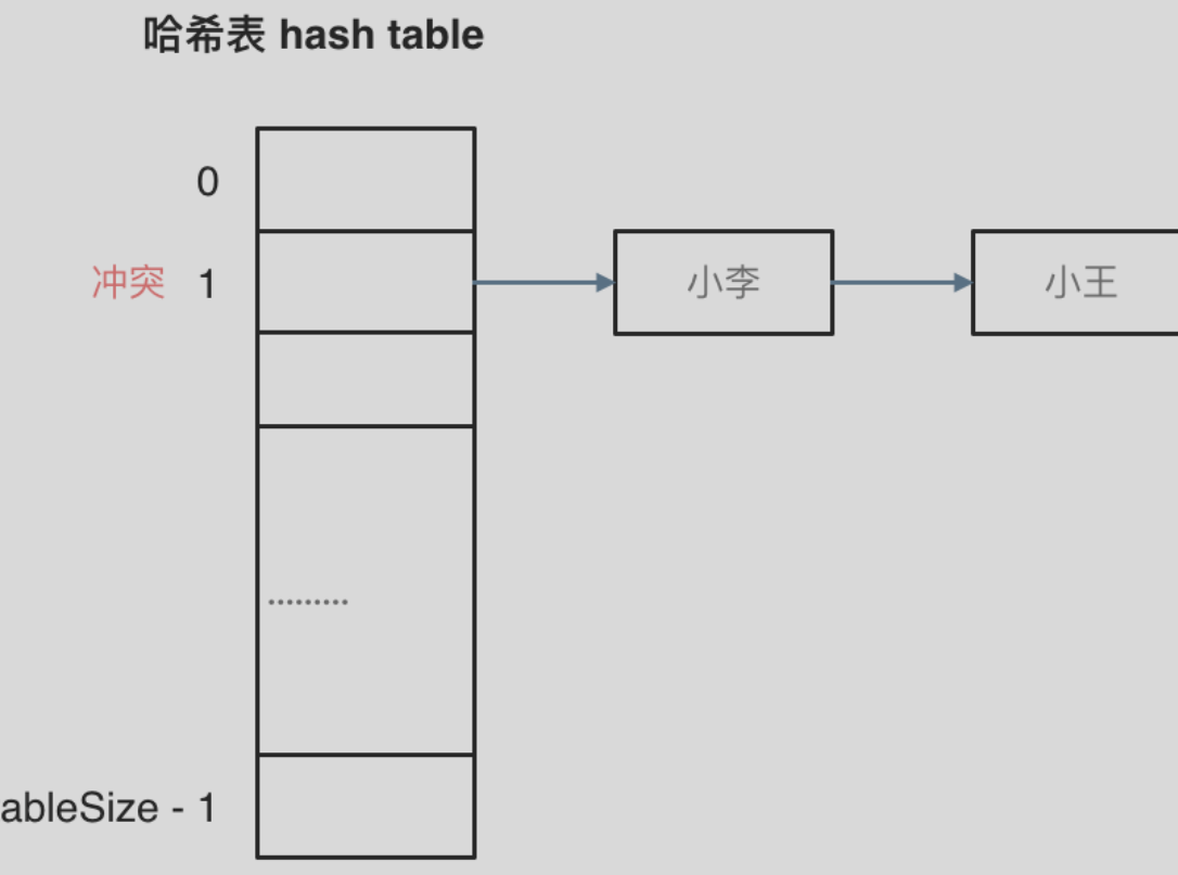 小李和小王都映射到哈希表索引下标为1的位置,这种现象就叫哈希碰撞