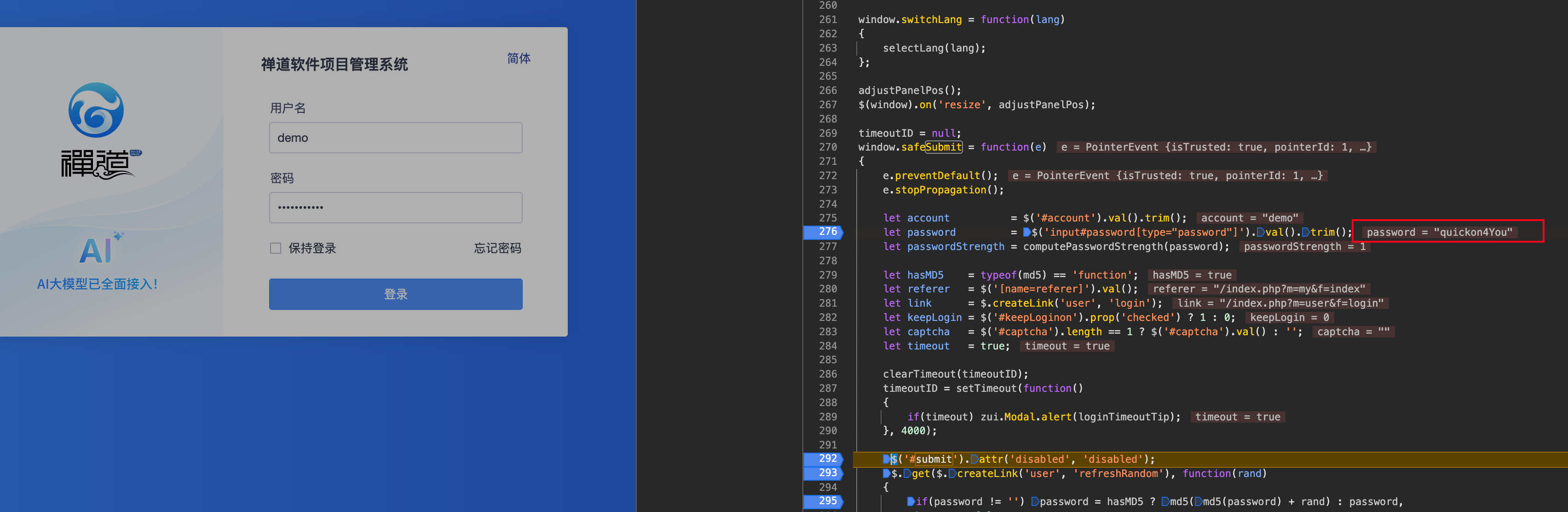 1.通过网页登录的 JavaScript 破解禅道登录