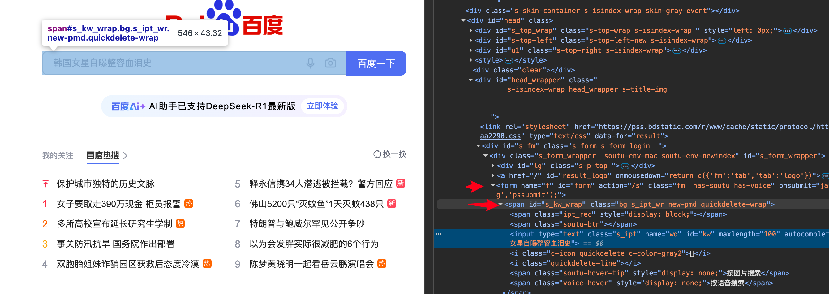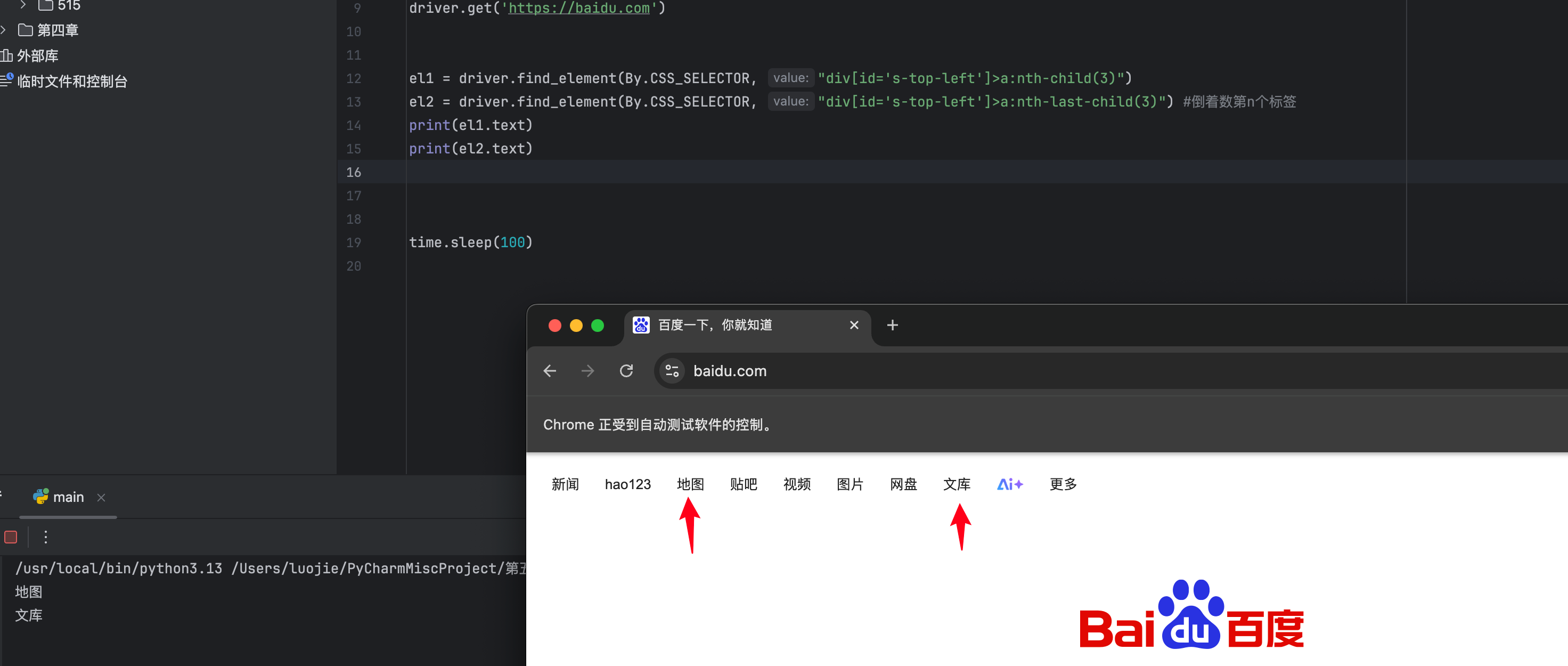 el2 = driver.find_element(By.CSS_SELECTOR, "div[id='s-top-left']>a:nth-last-child(3)") #倒着数第n个标签6.css 模糊匹配